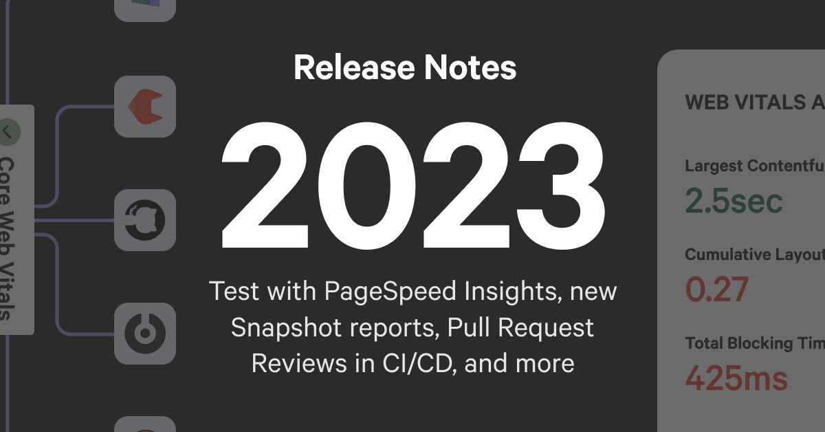 We continue to offer a tight integration with Lighthouse, expanded by platform features not available when running Lighthouse in the browser or command-line interface. In 2023, we went through two major version upgrades, including the 10.0 release with changes to Time to First Byte calculation, Largest Contentful Paint phases, new audits, and updated Performance Score calculation.
